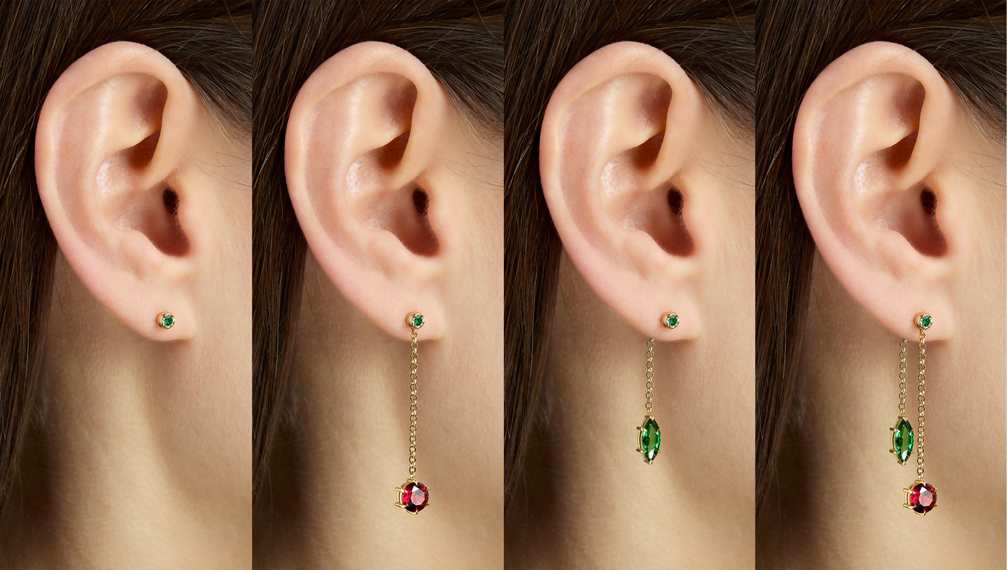 The earrings can be worn four ways as pictured